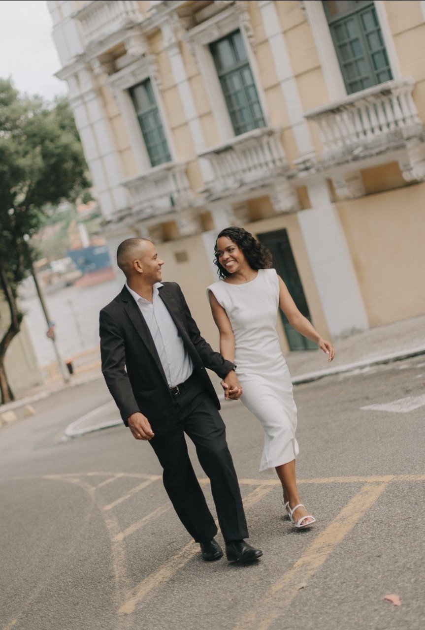 Num belo dia, perto do meu aniversário, uma recém-amiga decidiu ser minha cupida e colocou na cabeça que iria achar alguém bacana para ser meu namorado. Eu fui saindo de fininho, tentando fugir, afinal, já vi ajudas assim acabarem com um final péssimo, kkk. Mas nada adiantou, essa amiga foi muito insistente e começou a me mandar o perfil do Instagram de algumas pessoas. Quando me mostrou a foto do Jhon, foi impacto à primeira vista, kkkk (olha que essa minha amiga nem conhecia o Jhon; pediu ajuda a uma amiga que, coincidentemente, era amiga dele). Ele me adicionou no Instagram e fiquei esperando ele falar alguma coisa. Passou um dia e nada. Passaram-se dois dias e eu fiquei pensando: "Acho que ele desistiu de falar comigo...". Todavia, eu, nada boba (quem me conhece sabe, só tenho cara mesmo, kkk), decidi arriscar. Mandei uma mensagem aleatória no direct do Instagram dele e, quando vi, ele já estava me pedindo o número de WhatsApp e nós estávamos conversando todos os dias. Jhon, sempre gentleman, no dia do meu aniversário foi um dos primeiros a me dar os parabéns e, para não perder a oportunidade de conhecê-lo pessoalmente, eu o convidei para uma ceia que aconteceria no final de semana, na minha igreja. Ele não só foi como apareceu (lindão) tocando o seu sax alto. Era um dia de muita chuva, mas mesmo assim ele fez questão de estar lá e me presentear com um cartão e chocolates (aqui ele ganhou meu coração para sempre, kkk; acertou em cheio com a formiga aqui). Hoje estamos em contagem regressiva para o nosso casamento e muito agradecidos a Deus (e às nossas cupidas) por este bom encontro que, ao contrário do que pensei lá no início, terá um lindo "final" feliz.